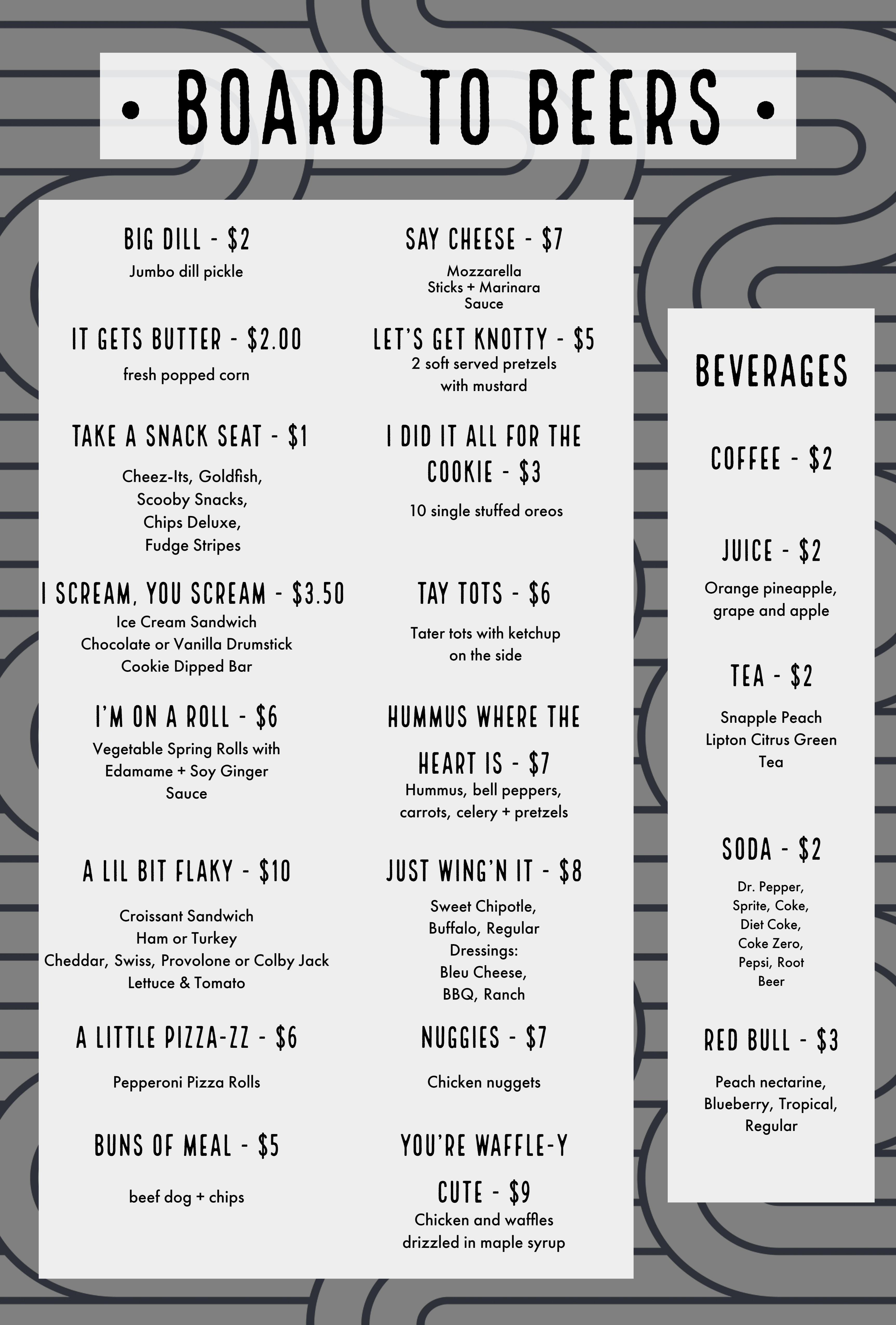 We've got you covered with the best kept secret at Board to Beers.